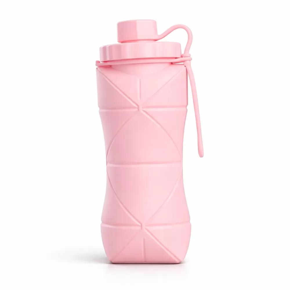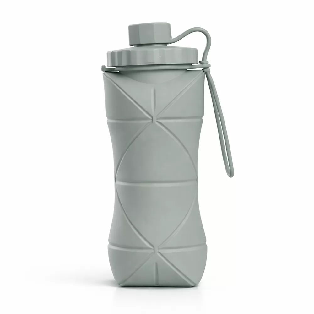 Garrafa dobrável com capacidade máxima de 500ml. Possui estrutura flexível em silicone, livre de BPA e é compatível com lava-louças. Conta com tampa rosqueável em polipropileno (PP) com protetor de encaixe para o bico e alça lateral para transporte, que também pode ser utilizada para envolver a garrafa quando dobrada.